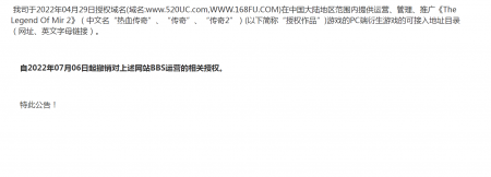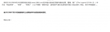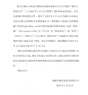 202204-26金年汇信息技术有限公司(以下简称“我司”)自2021年获得《热血传奇》原始著作权人独占性授权,一直...